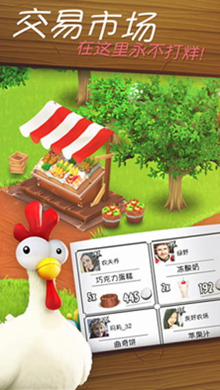 卡通农场苹果版是一款非常有趣的模拟经营类的游戏,英文名叫做:Hay Day。之前在Android客户端中就已经深受广大用户们的热烈支持,一直以来也吸引了不少新玩家,而大部分的手机游戏都是先去Android版,再出IOS版。游戏中玩家将扮演一位继承了亲戚家里农场的角色,为了让农场发展的更好,你需要精心经营,收集需要的物品,购置更多的土地,感兴趣的小伙伴快来下载吧。