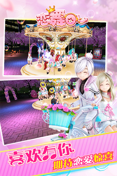 游戏创新开放场景,带来全新的社交体验。“星恋魔法阵”帮你在茫茫人海中找到对的人;“时空之塔”全视角唯美场景,和Ta共乘旋转木马,树下呢喃Kiss,埋下“时光蛋”时光之约就此达成;单膝下跪和Ta步入“甜蜜殿堂”,来一场跨越时空的世纪婚礼吧!邀请小伙伴们一同来见证幸福盟约,听听你们在恋舞世界中相遇,相知,相爱,直到相许的浪漫爱情故事!