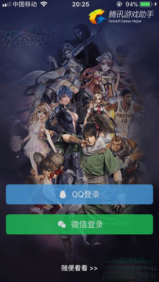 用户想要在腾讯游戏助手里面添加游戏,首先打开该APP软件后需要选择微信或者QQ登录游戏账号。