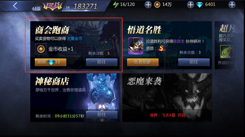 需要注意的是,跑商有3种奖励额度:1倍,1.2倍以及1.5倍,接取任务时自动生成其中一种,可以通过打探消息消耗神晶来重新生成任务,额度越高,跑商完成获得的金币也就越高哦!