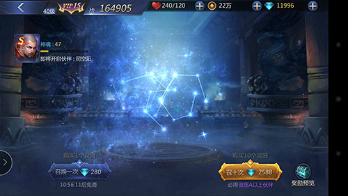7、最后就是土豪玩家们简单爆粗暴的获得方式啦,在招募系统内召唤伙伴,一次性召唤十次必得资质A以上伙伴哦,获得S级伙伴的机率也是很高的。