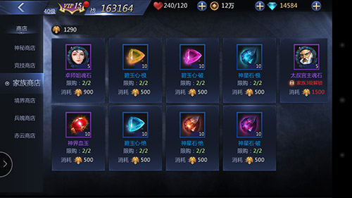 5、家族商店也是有出售魂石的,购买消费的是家族贡献,家族贡献通过家族捐献和家族任务获得