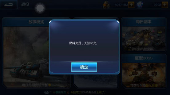 第四:如何获得更多的燃料。燃料是支撑玩家线上进行坦克升级以及升级各种东西的基础材料,现在的版本燃料虽然产出不算很多,但是运营活动会送挺多燃料。每天中午的12点和晚上18点的时候,系统会赠送60点燃料。还可以通过好友赠送的方式获得,每日上限12次,也可以每日购买,但是对于钻石少的玩家推荐每日只购买1次,因为第1次只需要花费50钻,还可以通过商店和军团商店获得,包括巨型BOSS,只要保持一定的在线时间,燃料不会太缺。