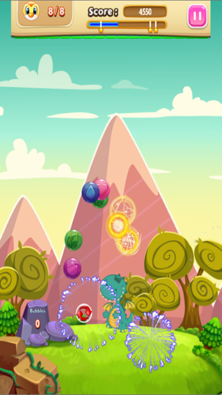 有时候可以先不急着消除,我们可以先将其他颜色的泡泡对垒在位置极佳的泡泡下方,待时机成熟再一次性击落,这样得分才会高。