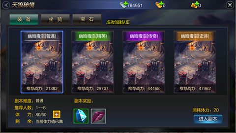 小提示:只要队长大人有高品质的令牌,队内成员就都可以进入到高级天狼秘境副本哦