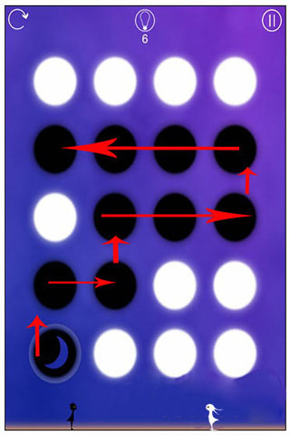 最开始的关卡难度不大,随意思考便能够找出正确的线路,有月亮的地方是开始,但结束的地点却由玩家决定。但无论让手指如何曲折的舞蹈,一定不要忘了初心——同一个世界,等待着相见的二位正在两个角落期待。