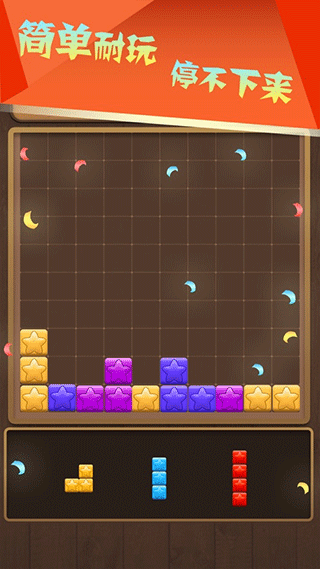 星星联盟是一款类似于消灭星星的休闲益智类小游戏,同样是星星但是在玩法上还是不一样的,星星连萌游戏界面为10x10的空白格,其中包含14种不规则的方块,每轮底部会随机出现三个不规则方块,玩家需将方块摆放到空白格内进行填充,当横排或竖排填满后,即可达到消除,获得分数。摆放的先后顺序,对方块形状的预估以及剩余的空间都将是玩家必须思考的问题。看似简单,但是真正玩起来还是有一定难度的,同时游戏还拥有三色模式、四色模式、递增模式、消尽模式、时间模式、拖动模式等丰富的玩法,绝对给你不一样的游戏体验,喜欢的亲们一定要下载体验哦!