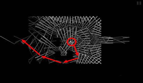 4、打开开关后按照原路返回你会发现之前上方的凹槽变化到下方,同样使用刚才的方法从下方的缝隙道路中通过,在回到起点的位置即可到达终点。