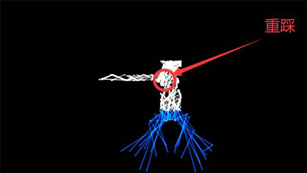 2、到达这里后,我们重踩(跺脚),按住脚步一秒然后松开(很多人不会这个技巧,这也是过不去这一关的原因),踩了之后可以发出声音,可以把怪物吸引过来。注意:普通走路时引不过来的。