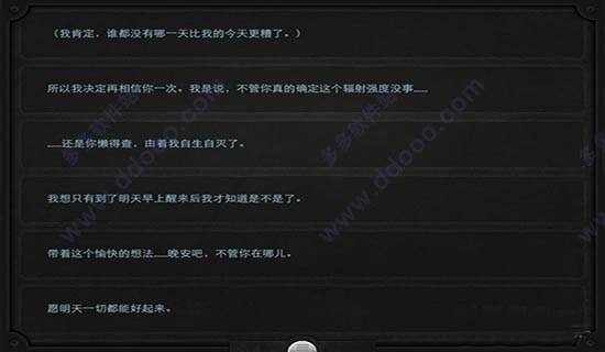 不得不说游戏的叙事节奏做到恰到好处,不会让人感觉到厌倦,反而把期待值无限提升。在等待回复的过程里,你会开始担忧睡在反应堆附近的泰勒是否能平安渡过一夜,会为他身体的受伤或病变而忧伤,为他是否该横穿陨石坑而心惊胆战。即使在做出选择之后,让游戏在后台自行运行,你依然会提心吊胆,生怕泰勒不幸丢掉性命彻底失联。