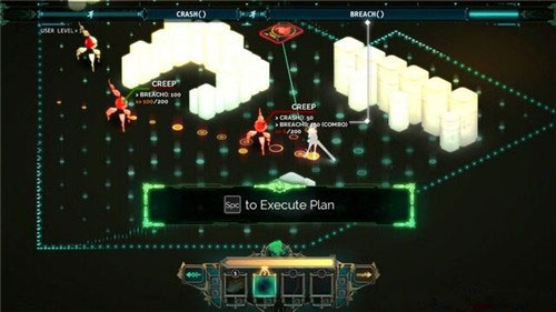 遇到敌人按空格使用战术模式,平米上面的绿色长条显示是总战术值,移动,设置攻击都要消耗这个。战术过程发动全程无敌,使用完之后在3秒之内全部技能无法使用,所以设置路线方面切记要找个没人地方躲起来。