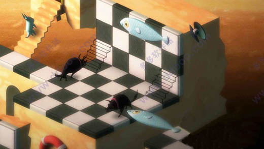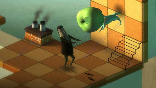 首先,《纪念碑谷》将视觉错误运用到了极致,转动建筑后的峰回路转,启动机关时的柳暗花明,每一次都不禁让人惊叹设计者的匠心独运。而《back to bed(梦游者)》在“真实与梦幻”这一点上处理得有些尴尬,准确的说本作对错误视觉的运用只体现在了 Bob 的灵魂——就是那只四不像搬动苹果时候,而 Bob 的本体却无法“飞檐走壁”,甚至有些在“埃舍尔世界”本该可以通行的地方,在本作中却行不通。