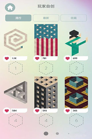 另外,kami2游戏还有自制拼图的玩法,你可以自己创造出各种奇葩的高难度拼图,然后发送到游戏平台中去难为其它玩家,游戏会随时记录挑战过你自制拼图的玩家数量和成功的人数,当然你也可以去挑战其它玩家的作品,相信这种互动方式也会等到许多玩家的喜爱。有兴趣的话,就赶快来挑战一下吧!