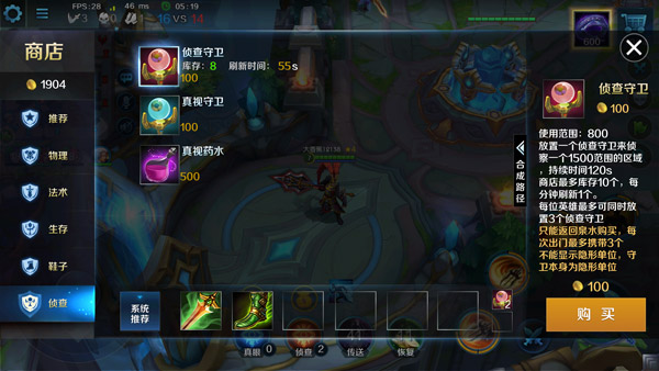 “要想对线好,高地视野少不了”,中路一直以来就是兵家必争之地,也是最容易爆发团战的地方。在敌方高台插下第一个免费赠送的侦查守卫,就能将中路一览无遗,无论是躲避敌军gank还是跟队友gank敌方英雄,性价比都是杠杠的。