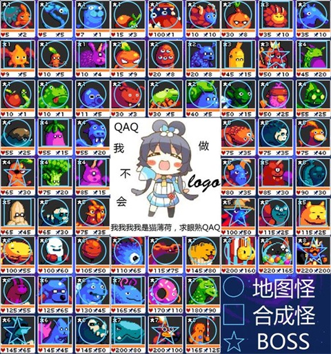 (原料用的都是可以在地图上直接获得的。有的时候如果用合成怪二次合成会快很多,所以此列表仅用于图鉴收集,并无实际利用价值)(ps:因为公式实在太多了,所以每种只提供两个公式)