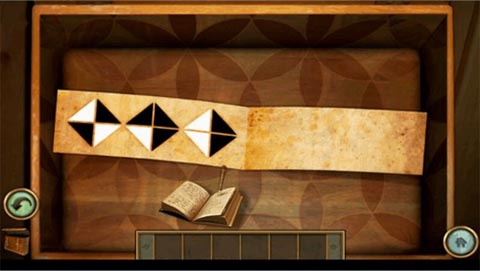 1、进入中间的房间,记录地上盒子里面的图案提示。然后走出房间,按照日记按下壁炉上面的方块,从打开的壁炉暗门进入神秘的渥太华村庄