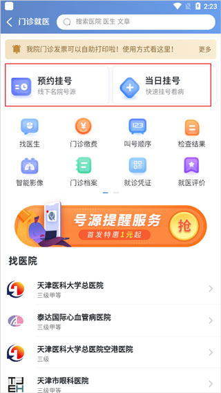 2、然后根据自行需要选择,预约挂号或者当日挂号;