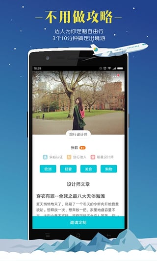 指南猫旅行app苹果版是一款旅行服务定制平台,该平台为解决人们自由行机票、酒店、景点、交通等攻略难题,运用日新月异的技术连接旅游人与旅行达人,这些旅行达人有着丰富的旅行经验,曾在全球多个国家城市生活、留学、深度旅行,对当地的景点、线路、风俗习惯都了如指掌,他们会为旅游者提供专业的旅行咨询、行程规划,一对一制定个性舒适的旅行方案,让旅游者以低于行业20%的价格,享受指南猫旅行遍布全球105个国家7000多个城市的旅行体验。