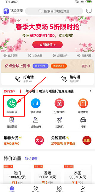 超低话费,全球一键畅打,免费接听,无忧出行。