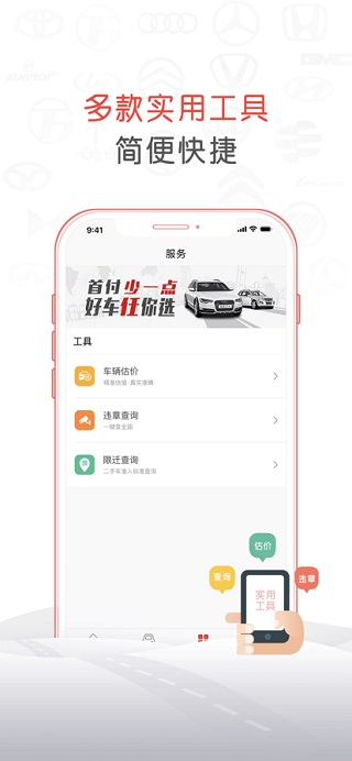 3、多款实用工具,靠谱!车辆估价,违章查询等,简便快捷。