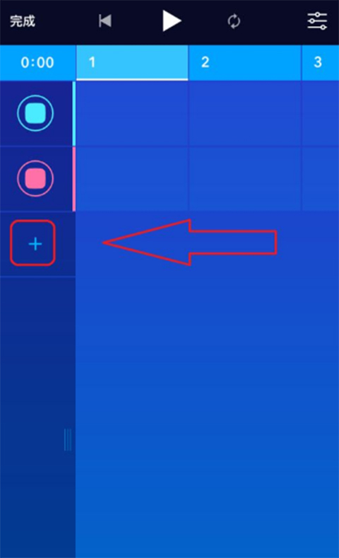 3、我们进入歌曲后,可以点击一下下面的加号增加一个新的叠复轨。上面的一个格子代表10帧,