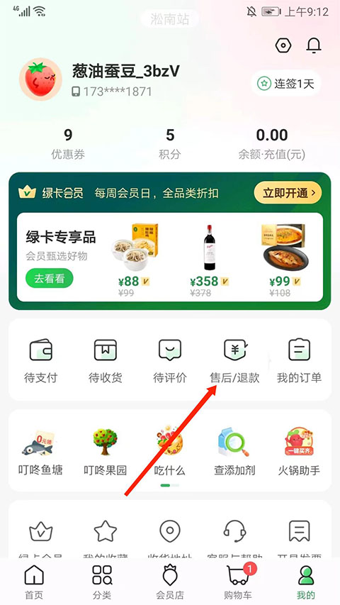 2、进入到个人中心界面,选择“售后/退款”选项,