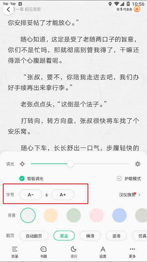 2、字号则是控制阅读的字体大小了,数值越大则字体也大