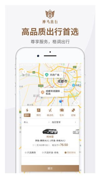 神马专车ios版是由贵州千禧公司自主研发的一款豪车租车服务平台,该平台服务于上海、深圳、广州、成都、贵阳等城市,专为用户提供预约用车、接送机、日租、半日租等多元化用车需求。神马专车能提供特斯拉Model S、宝马530LE、宝马I3等诸多豪车,不管用户是要送机、旅游用车,还是商务用车和企业用车,它都能及时为用户提供一触即达服务,让用户体验到VIP般的享受以及独一无二的出行服务。