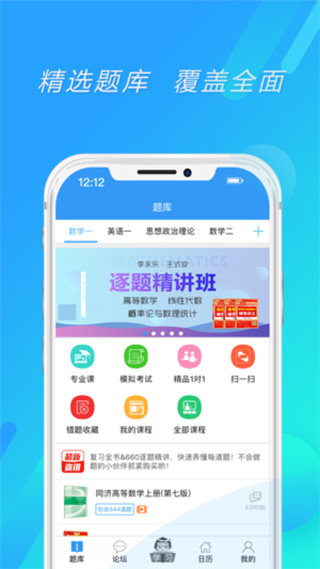 考研题库由三大板块构成,历年的考研真题,包括了前十多年的考研真题5万多道,试卷300余份。课后习题,如:同济版的高等数学,线性代数,浙大版的概率论和数学统计,马克思主义基本原理,毛泽东思想和中国特色社会主义理论体系,中国近代史纲要,思想品德修养与法律基础。各位考研一线教师的考研资料,如:李永乐的考研数学复习全书(高数、线代、微积分)660题,李正元的考研数学复习全书(考研数学一、考研数学二、考研数学三)陈文灯的考研数学复习指南,肖秀荣的命题人1000题,徐之明的考研政治红宝书等。本题库可以为永久免费,一款APP在手随时随地的学习。
