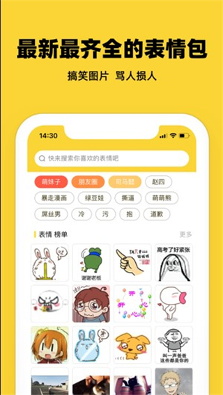 超级表情包手机苹果版是来自友创世纪(北京)科技有限公司的一款手机表情包制作软件,该软件能为用户提供最新最全的微信QQ表情包,包括动漫美剧韩剧电影等影视剧截图,当前最新最热的话题人物,及各种精彩游戏对话说明图,你想要的这里都有。它支持实时更新数据,榜单每天都会推出当前转发最多的表情,助您将表情包转至第三方平台,用图片代替言语。