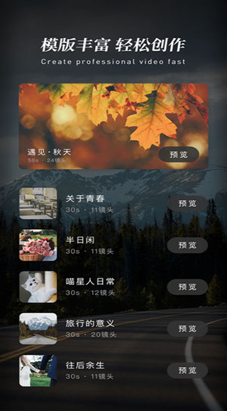 提供海量精美主题供您免费使用,比如:生日,LOVE秋天,天空,节日等,让你一键生成美美哒视频。