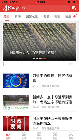 1、首页:要闻、青海、观察、民生、观点、畅游、生活、视听多个板块带你了解本地及国内国际新闻资讯。