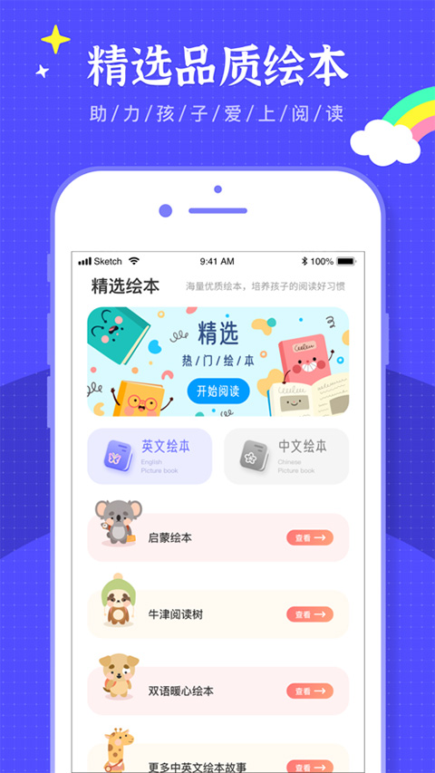 4、内容丰富:经典绘本、廖彩杏书单全阶段、牛津阅读树第一级、I can read之饼干狗、海尼曼分级读物GK、兰登分级阅读。