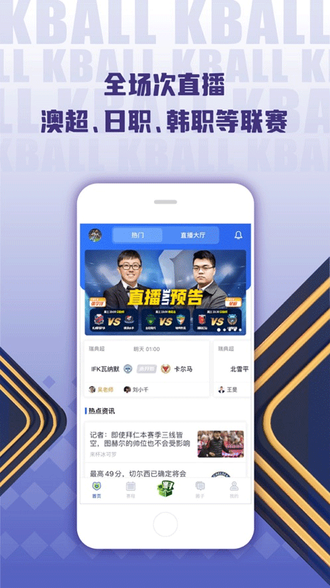 K球拥有日职、日乙、澳超、美职、韩职等众多联赛版权,在K球你可以免费观看正版赛事高清无延迟视频直播。