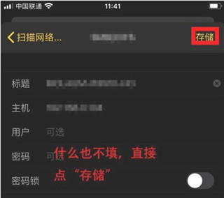 3、如下,扫描到相应网络,点击,进入设置界面,此界面中内容不用更改和添加,直接点“存储”;