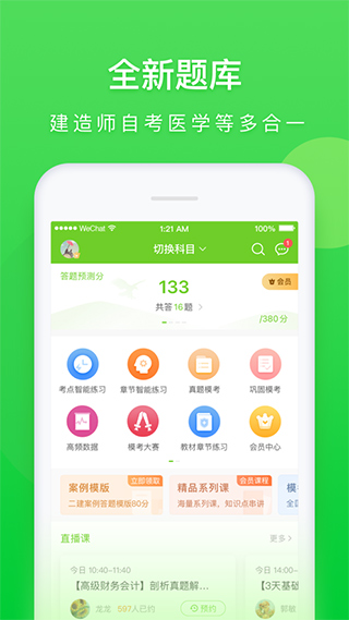 【万题库APP:万能合一】你一生用到的考试逆天相聚。全面锻造全面人才,金融类:基金从业、证券从业、银行从业、期货从业;财会类:初级会计职称、中级会计职称、注册会计师、经济师、税务师;工程类:一建、二建、造价、安全工程师、电气工程师、招标师、消防工程师;医学类:执业药师、执业医师、执业护士、卫生资格;公职类:教师资格、教师招聘、公务员、事业单位;资格类:人力资源、四六级、司考、社工;学历类:自考、成考、考研这些全都能自学!下载“万题库”,成就你的“麒麟之才”!