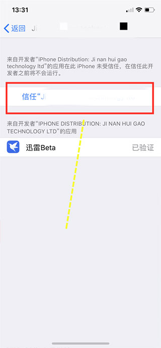 4、添加【企业级信用】。依次点击【设置】-【通用】-【描述文件与设备管理】,为迅雷添加信用;