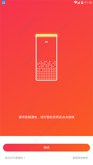 2、将音响通电,可以看到小米AI音箱顶部的LED灯已经变成橙色的,然后在APP中进行查询AI音箱。