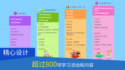 - 针对幼小衔接,进行了字词认知和句型理解方面的专门设计。