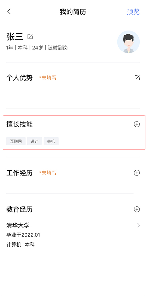 2、选择技能标签