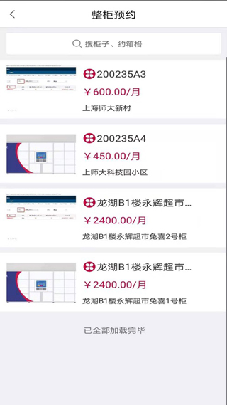2、整柜预约,支持快递员在线完成快递柜的预约,避免没有合适快递柜。