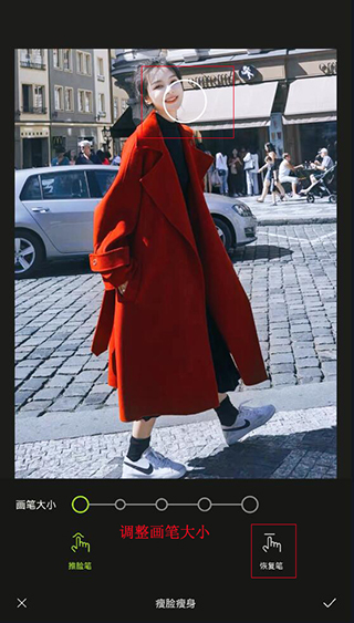 4、点击瘦脸瘦身功能,推动脸颊即可瘦脸,如下图所示