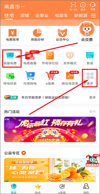 1、打开网上国网进入,在软件首页找到“电量电费”点击进入,如果首页没找到“电量电费”按钮可以点击“更多”;
