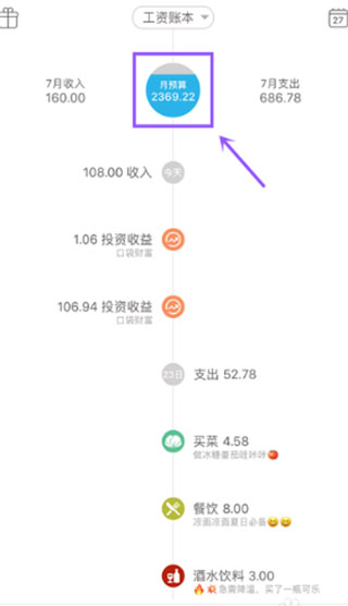 5、设置好预算后,您的预算情况,将会在账单界面显示预算剩余情况。
