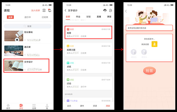 7、老师发布抢答后,学生可通过【活动】列表进入抢答。