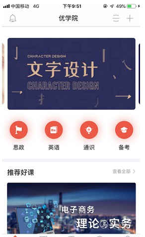 2、登陆优学院之后,来到这个应用的大厅,这个地方就是它推出来的一些课程,一般就是用钱来买的;
