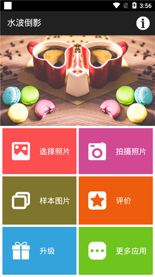 1、为您的照片创建水面倒影镜像效果,可从相册导入图片或拍照。