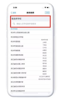 6、接着按学校的汉字或者是首字母进行查询学校并选择;