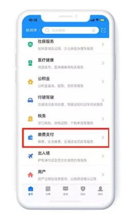 3、进入首页找到缴费支付按钮进入;