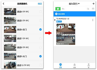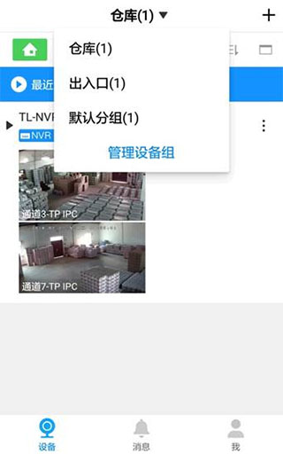 每次登录app后,点击顶部分组名称,即可选择设置好的分组快速查看通道。